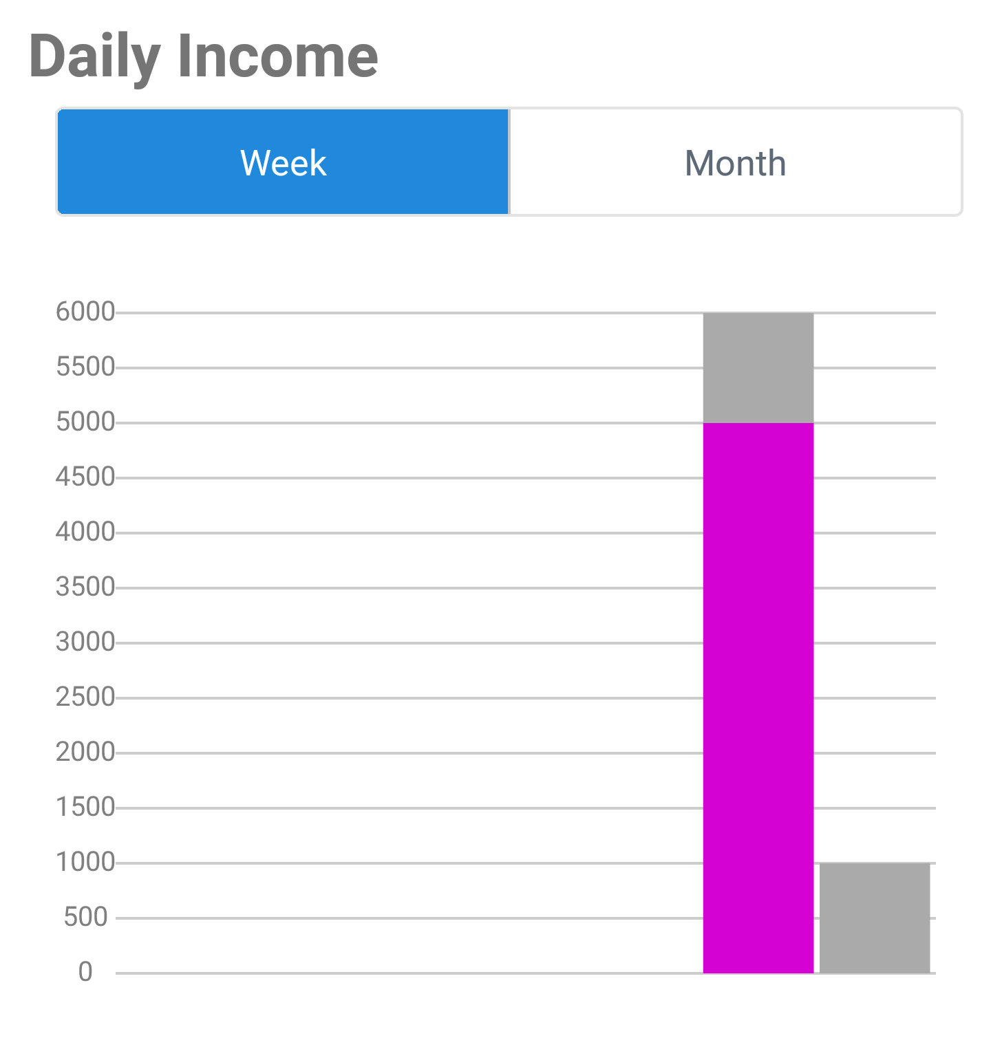 The Weekly/Monthly Income: It is quite similar to that of the expenses described above. There are two options on the tab, to show either the income for the week or for the month. The information are shown on a component bar chart too.