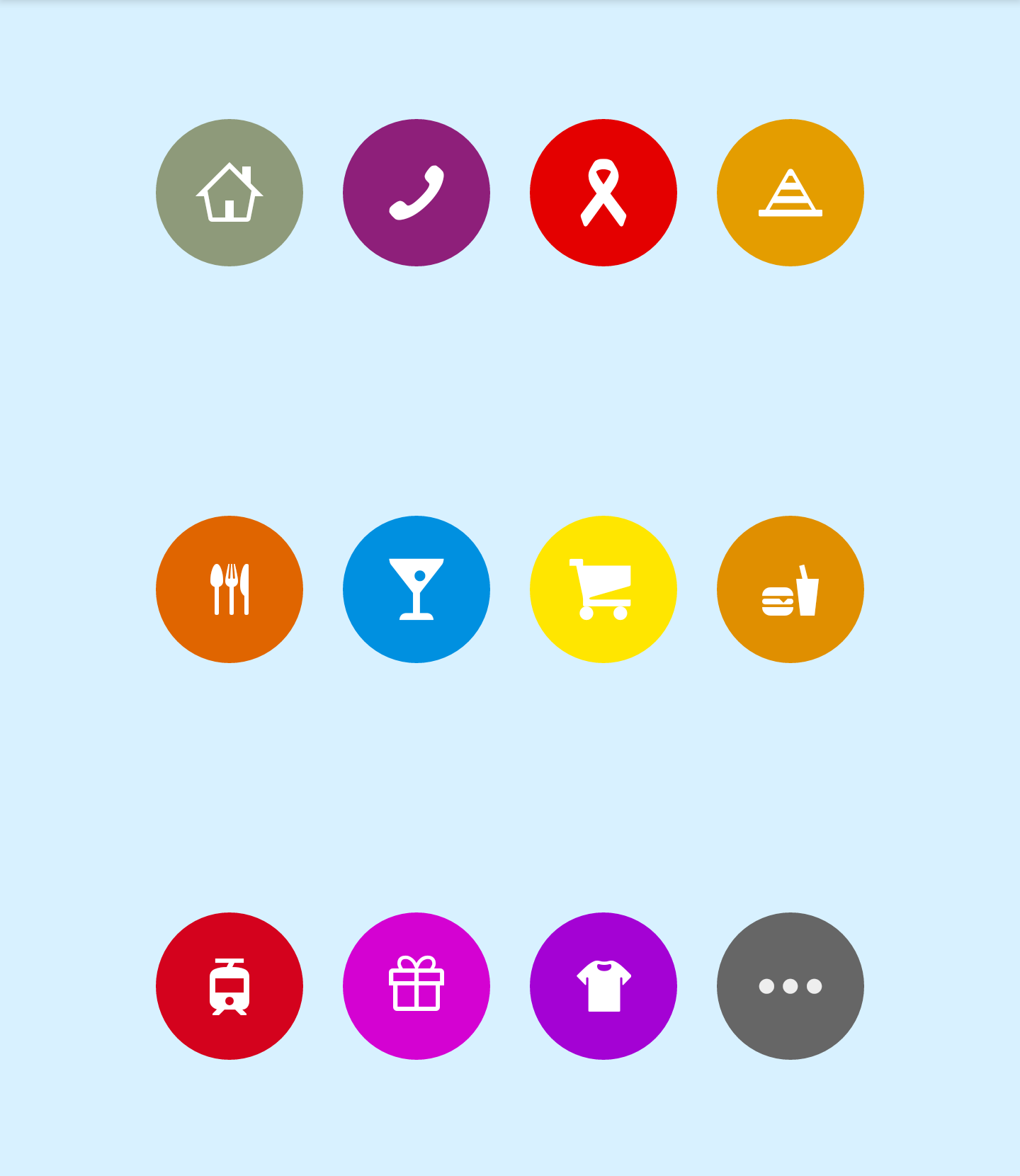 On the home page there are two buttons, "add income" and "add expense." Simply put, expense is money spent, while income is money gained. When selecting to add income or expense, there are eleven options to select from. The options are represented with symbols. The options include, housing, phone, health, food, beverages, shopping, snacks, gift, shopping etc. I feel the range of options is limited though. There's no representation for Internet related activities. This didn't hurt the effectiveness of the app in anyway though.