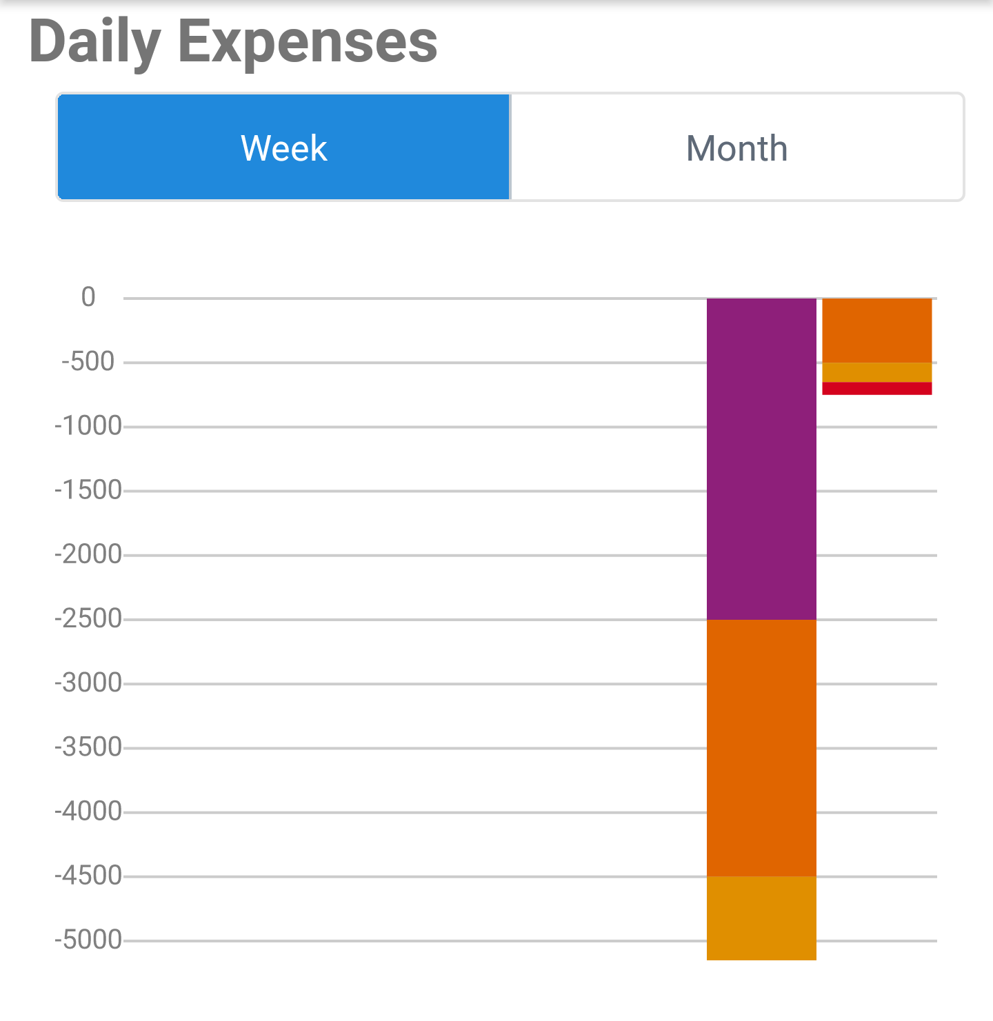 The Weekly/Monthly Expenses: There are two options on the tab, to show either the expenses for the week or for the month. The information are shown on a component bar chart.