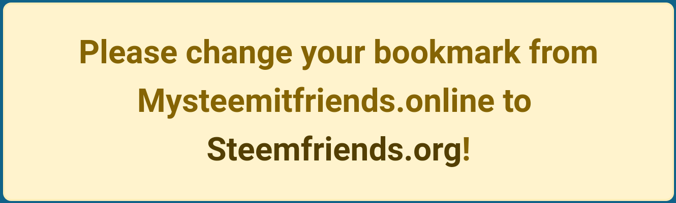 For now, MySteemitFriends is still active and redirects to SteemFriends. In future updates, MySteemitFriends would be discontinued. Since domains aren't free, it's a wise decision made by the developer. It is best you memorise the new domain name, if you haven't done that already.