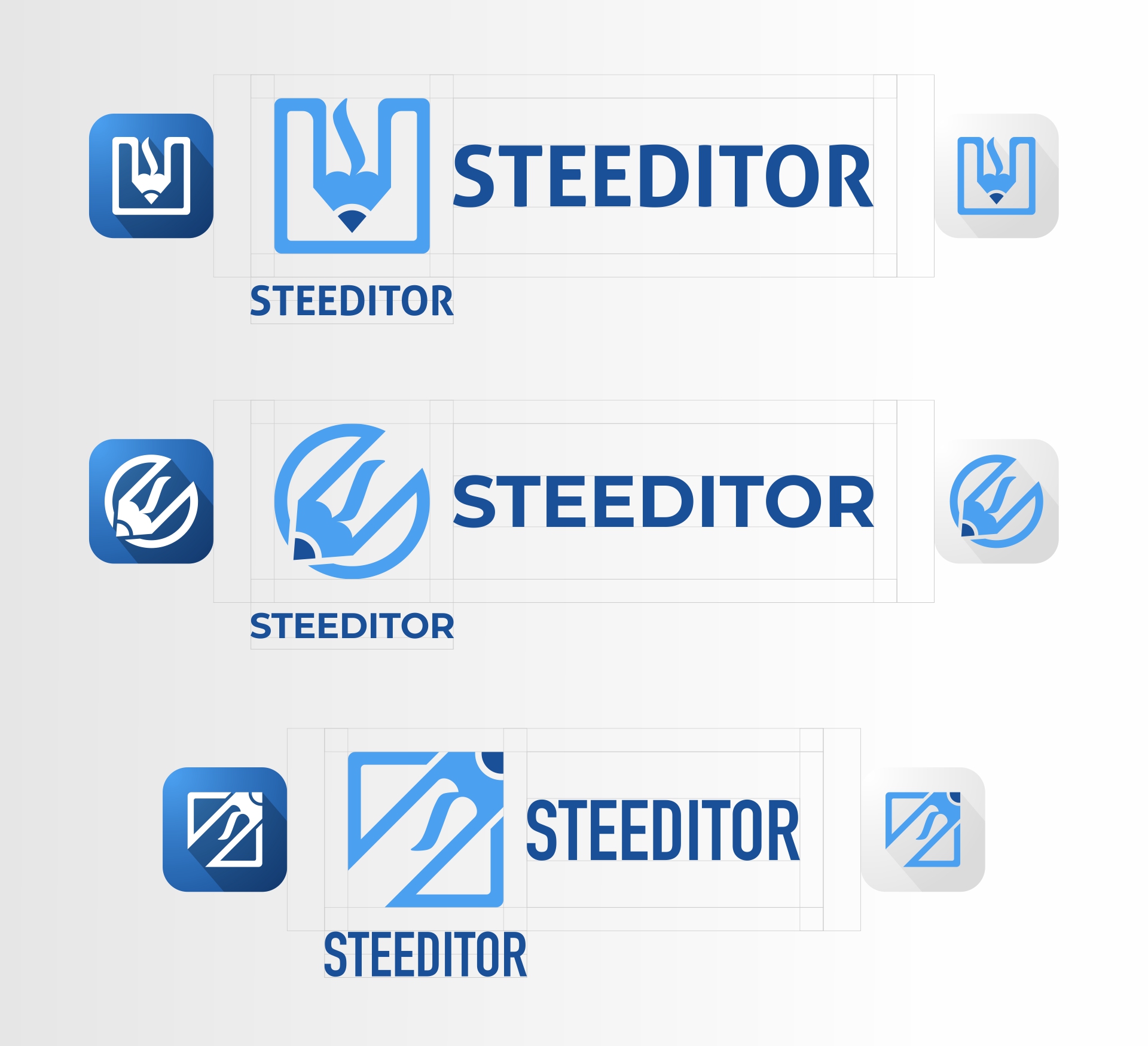 This task request is about a logo (icon + text) for Steeditor - an editor for Steem posts with advanced options. The app (actually, a prototype of the app) is designed following Material Design principles, so the logo should also use these principles.
