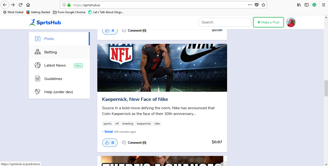 Sprtshub.io is a Decentralize Sports platform built on Blockvain which allows users to blog, bet and play games and while doing this, You Earn. You get to read Sports new on the platform also.