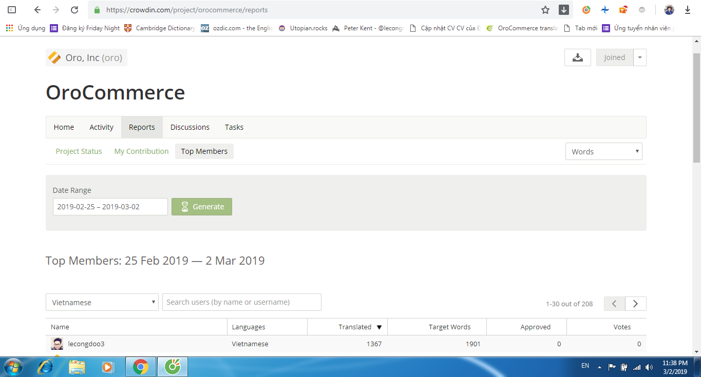 My work involves a translation of OroCommerce from English to Vietnamese. This time, I had to deal with several parts of the project. Thanks to that, I could somehow imagine clearly about what I've been taking care of and understood more about the marketing field. However, there were some terminologies that I was concerned a bit with, so I had to look them up in the specialized dictionary and went to the Internet to obtain more information and search for the exact Vietnamese meanings of the words translated. Additionally, I asked Carlpei for some suggestions to make sure the strings translated were correct.