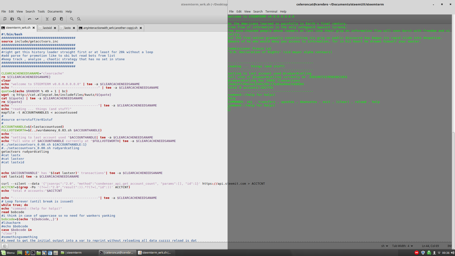 which is a collection of functions and commands that can be used by mainscripts, mainly bubbled out of things i used for my account @ubasti which i hope to turn into a location independent folder structure that can be used anywhere and with the right permissions should be able to be contained to its own root, preferring functions over subcommands so as not to spawn extra processes. I run minimal machines after all. Actually i'm hoping to end up with something i can cram onto a [vocore](http://vocore.io/v2u.html) , the weirdo version of the raspberry lol but thats all hobby and ergotherapy as said. Most important is brainrot prevention. I don't think focus on serious projects and this thing goes along at about a few lines of code per night (on a good night)