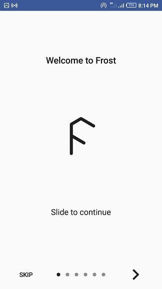 - After a successful login, the app then welcomes you with a message that says, "Welcome to Frost."