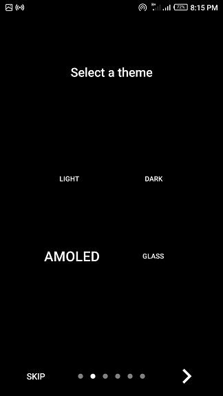 The welcome screen of this app is a bit different from the welcome screen I used to see on other apps. - The next welcome page is where you select your preferred theme.