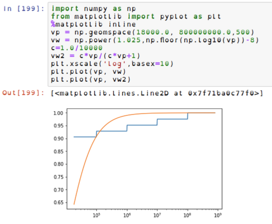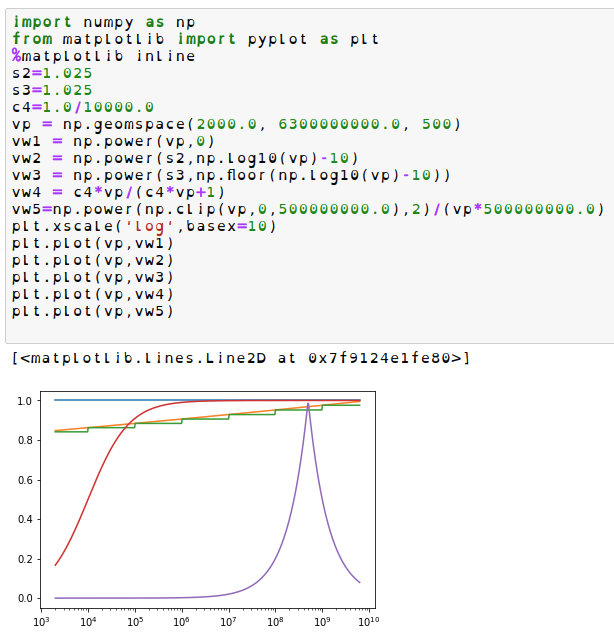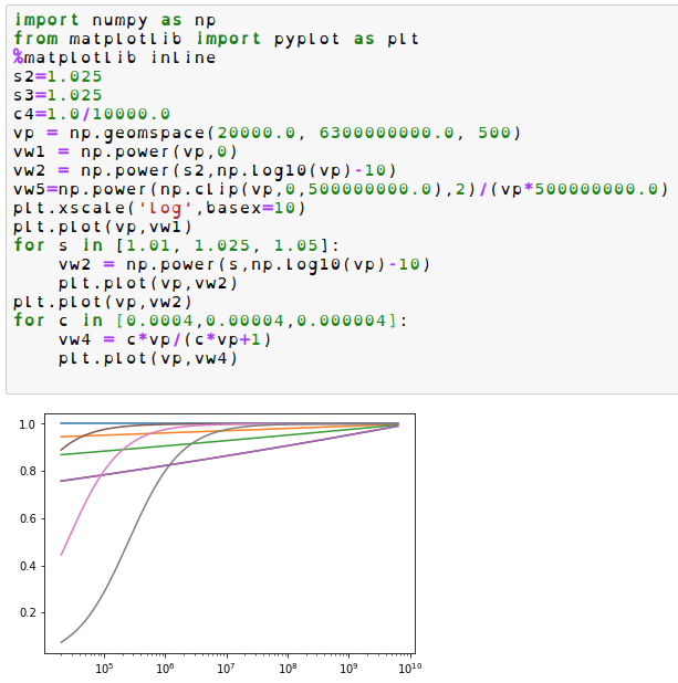 But in case you want to play with the scaling equations a bit, here is the code I used to make this graph: