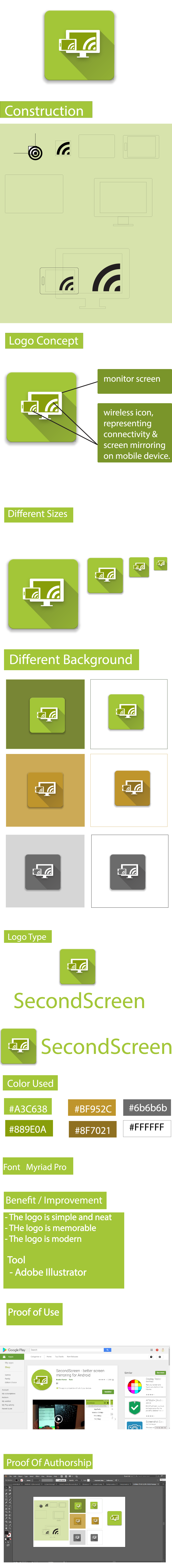 SecondScreen is an application designed for users that like to connect their Android devices to external device. It works with your existing screen mirroring solution to give you the best experience possible. With SecondScreen, you can change your device's resolution and density to fit your TV or monitor, enable always-on desktop mode in Chrome, and even turn your device's backlight off, among several other features. With SecondScreen, the wonders behind screen mirror will be known. I came across the wonderful project on playstore i contacted the PO, if he want a new logo for the project. His response was Yes After making several sketch, this is what i came up with. Y can read more about the project here