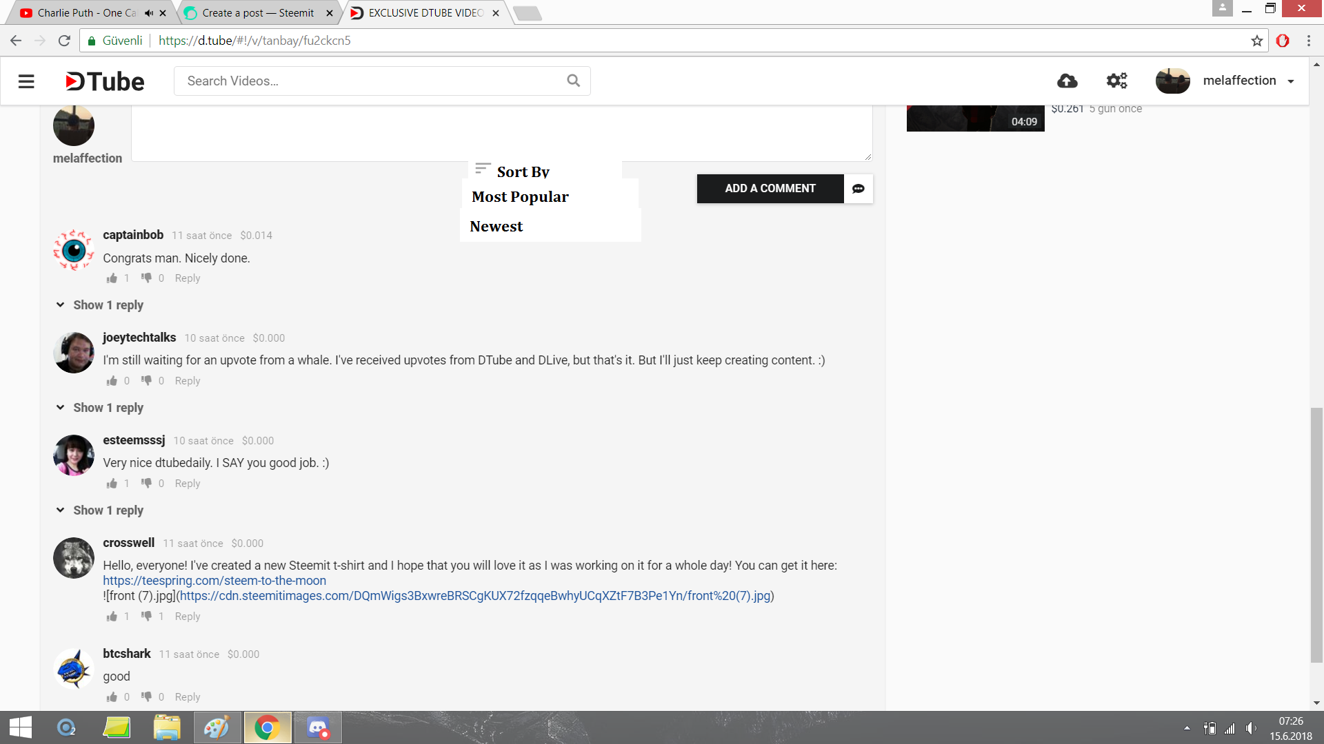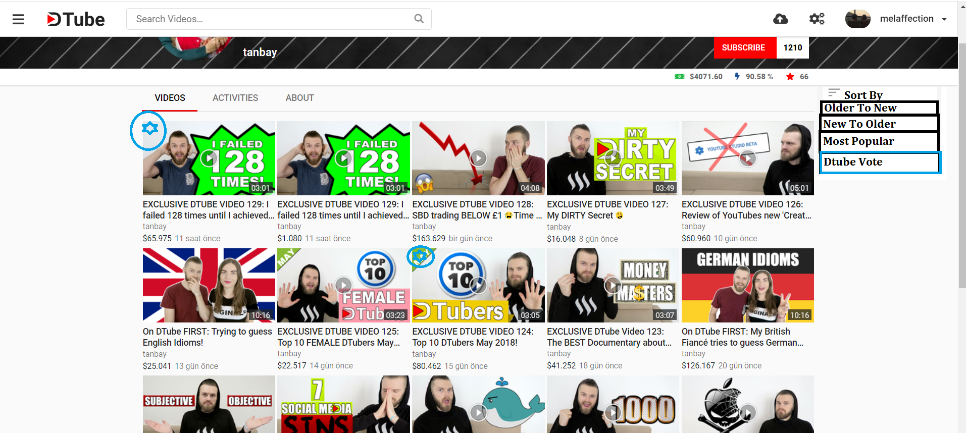 With these features,users will be able to see the best comments and videos that was already likes by other users.By adding sort by feature in the user videos page will give all of the users to be able to control and choose the video they like by most popular,older,newer and even the Dtube voted ones.