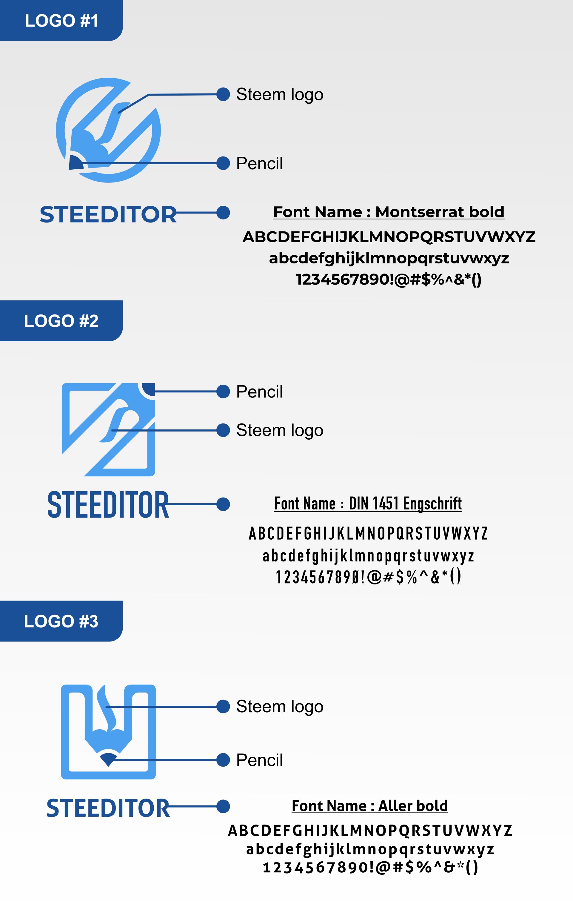 These logo proposed are combination between Steem Logo and Pencil; Pencil represents to editor. These logo are simple, clean and easy to remember.