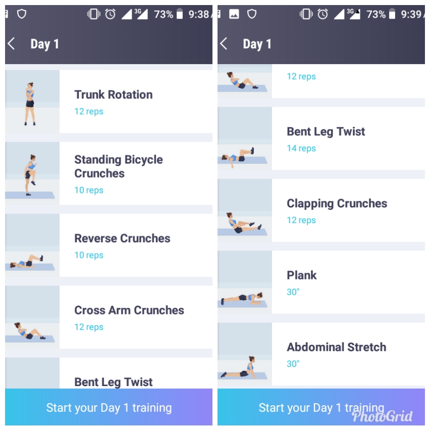 There are lots of fitness out there. It can be fat burning fitness or Abs fitness or glute shaping fitness and so on. The fitness I did most was the Abs and Fat burning fitness. Some of the Abs fitness I did was trunk rotation, reverse crunches, cross arm crunches, standing bicycle crunches, plank, and abdominal stretch.