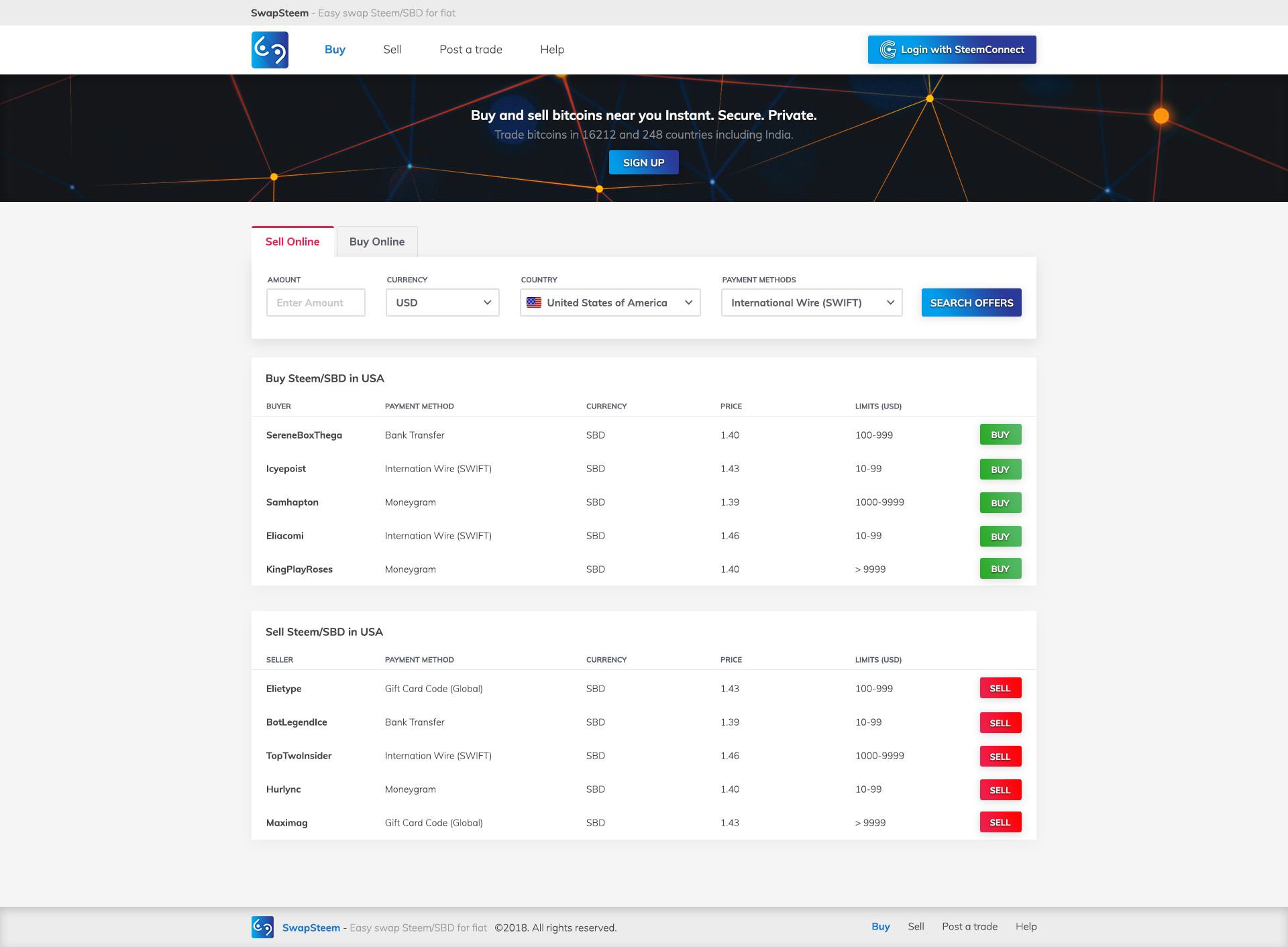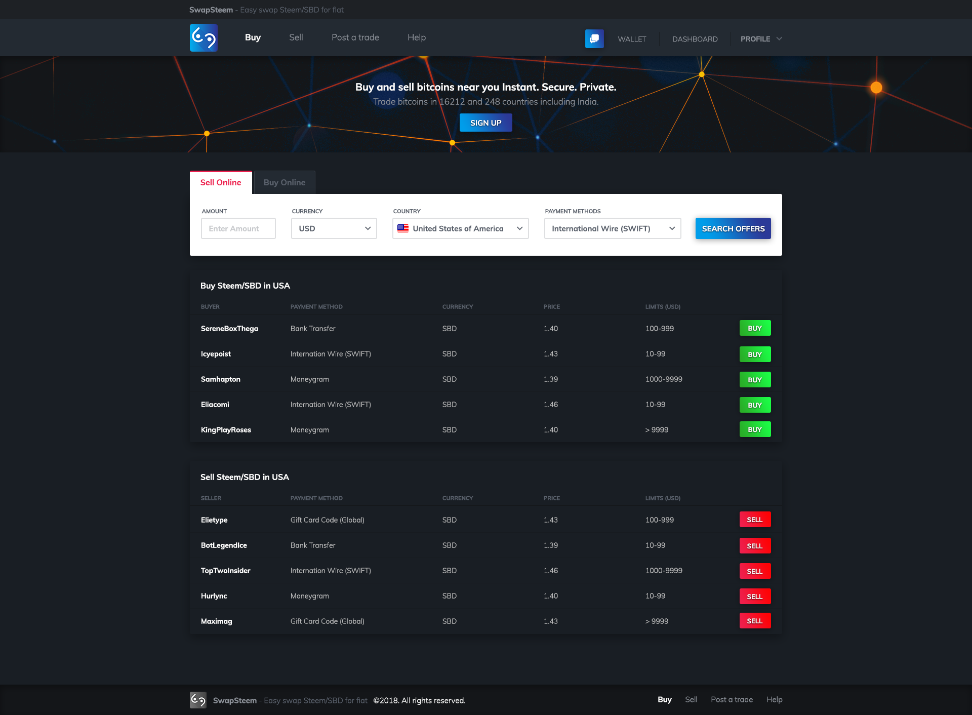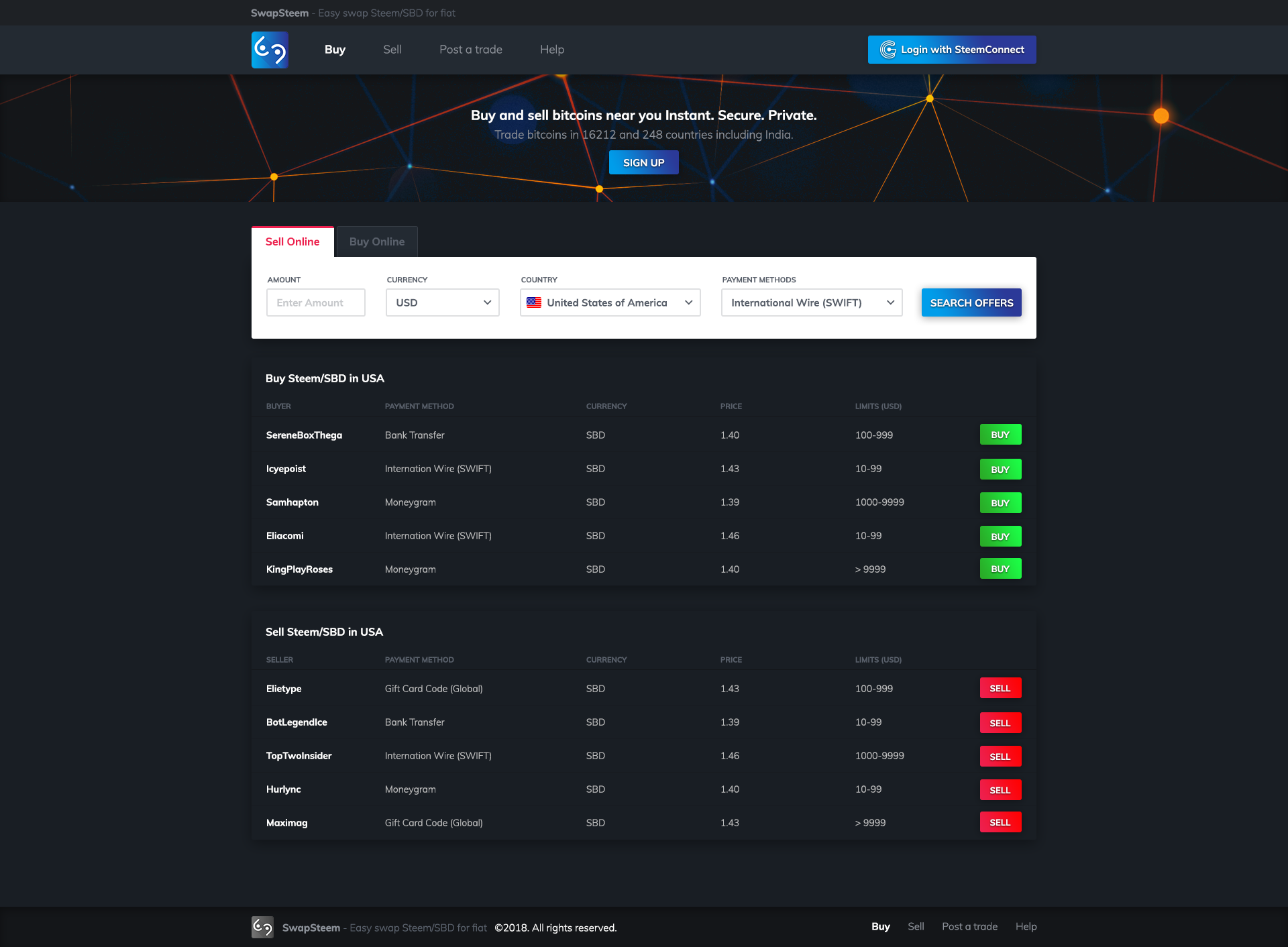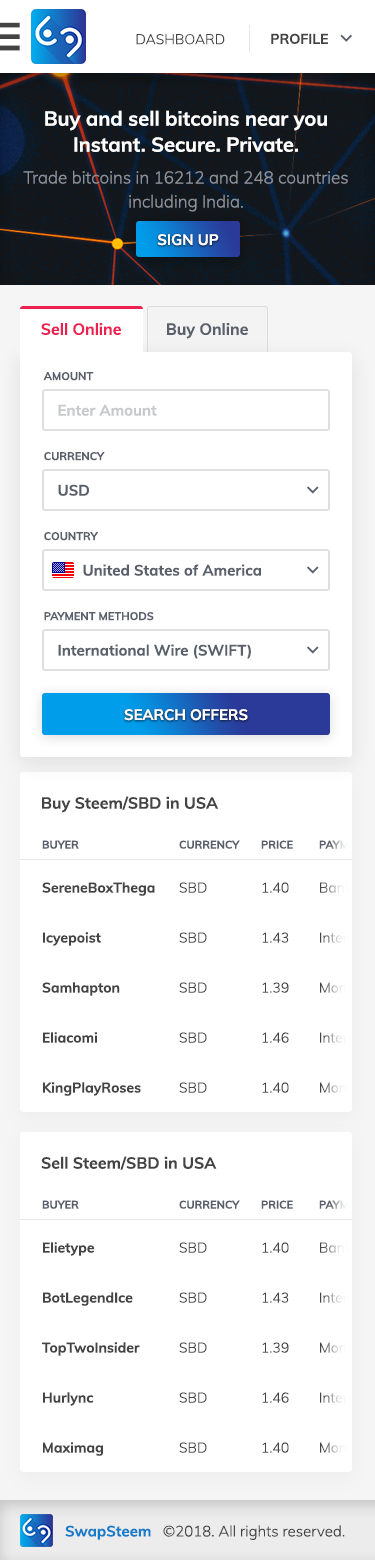 Swapsteem is a peer to peer exchange, similar to localbitcoins.com. With increasing number of users on this platform, we have felt a strong need for a peer to peer exchange to convert Steem and SBD directly to different fiat countries, provided with secure escrow transactions in moderation of varius influencial steem escrow agents for the respective country or currency. So we want to help Steemians get their hard earned Steem directly into their bank accounts, and save them a lot of Fees that exchanges take for such facilities.