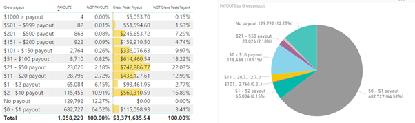 However, from April ’17 to April ’18 the number of posts increased by 905% and the total pay-out value by 202%.