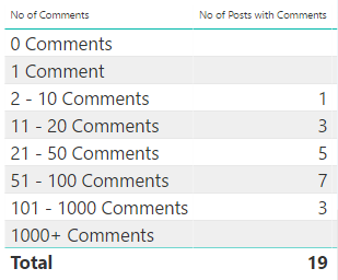 In May 51% of my post received 51+ comments. Really happy to see 3 of my posts (15.5%) received 100+ comments. That places 3 of my posts in the top 0.1% of posts when it comes to engagement via comments.