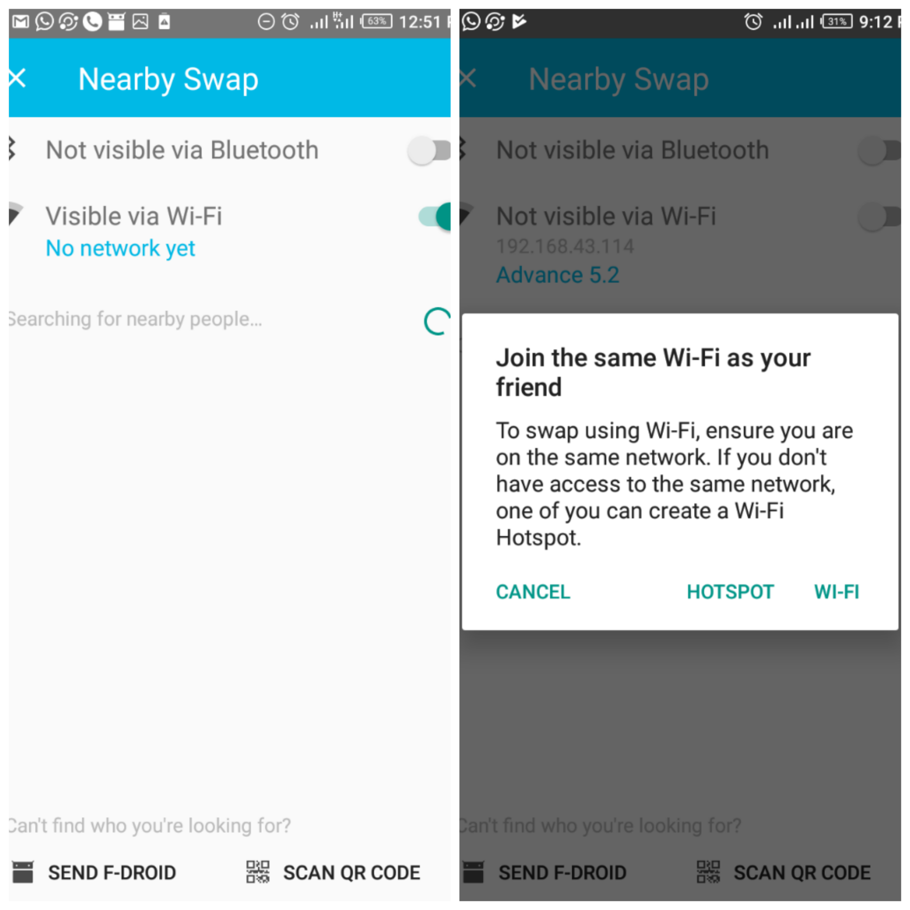 Furthermore, I feel F-share sounds more reasonable and suitable for this section. This is my opinion on the name; other users might be fine with name Nearby. In Nigeria, the cost of data is relatively high; I buy 1 GB data for a thousand naira from my network provider. I exhaust 1 GB data within four days on blogging and chats. In Nigeria, 90 percent of Android users make use of Xender to share apps and files, to cut down data usage. I use Nearby to send F-droid to my friends and share apps amongst ourselves, thereby reducing our combined data consumption.