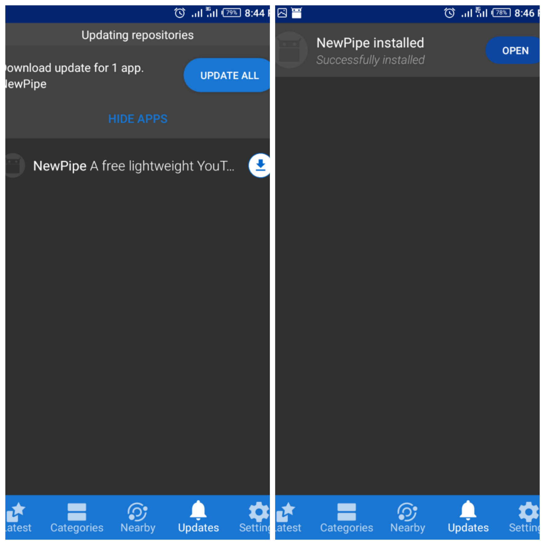 As the name implies, the latest section of F-droid displays list of new apps added to F-droid. Latest displays lists of newly added apps and recently updated apps. F-droid automatically updates the list at the opening of the F-droid app. Users can also manually refresh the list of apps in this section, by swiping downwards on the screen. I search through this section daily, for new and exciting open source Apps. Am always in search of Apps, to help enhance and improve my mobile experience or, to replace boring proprietary apps on my device with new open source Apps. I got to discover some amazing apps I use on my device through the latest section of F-droid. Apps like Newpipe, DuckDuckGo privacy browser, Amaze file manager, amongst others. My last Steemit blog post for last year, was on Newpipe; a great youTube frontend. I have benefited immensely from the latest section on F-droid.