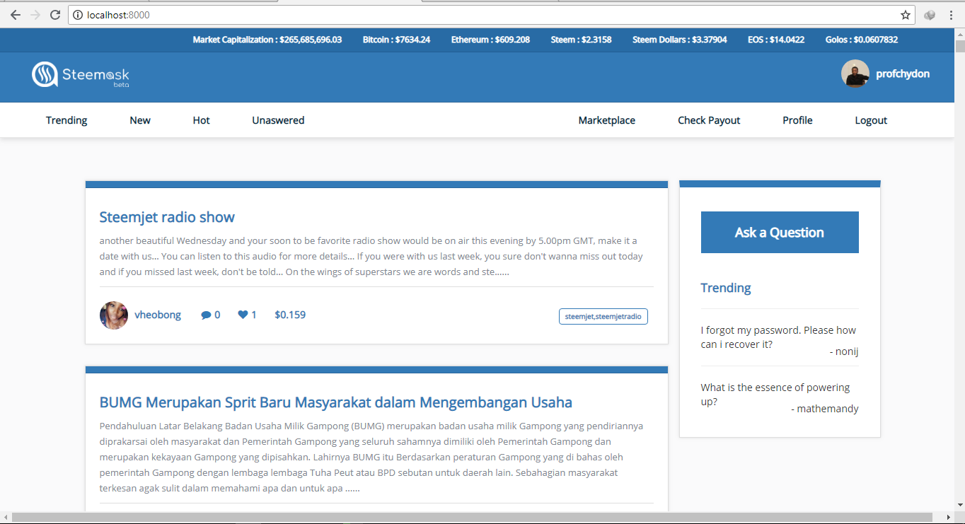 SteemAsk is a question and answer website that is been built to allow users ask both steem and non-steem related question while getting reply from other members of the community. Many steemit users especially newbies need guidance and most times they wish can get access to other members and ask question to help them be successful on steemit. SteemAsk provides the platform for this, and users can also search for questions to get quick answers. SteemAsk is the stackoverflow of the steem blockchain.