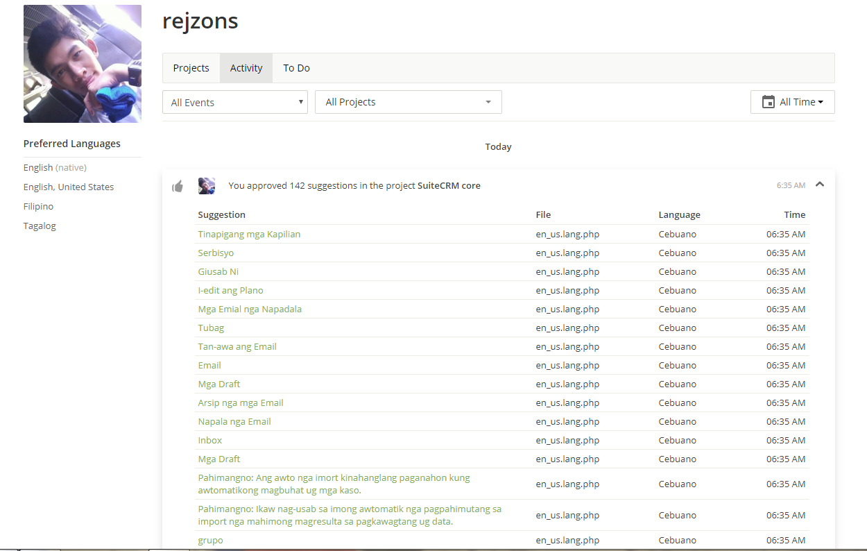 | My Crowdin Activity Link | rejzons' Activities |