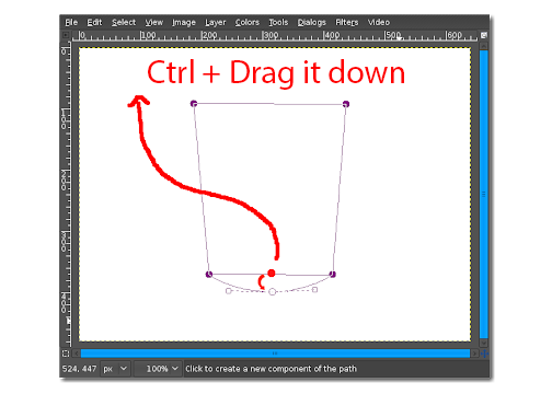 - Curve the front part by pressing Ctrl + click right in the middle of the bottom line while dragging the mouse down.