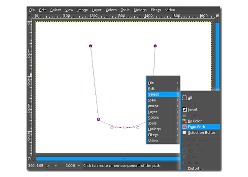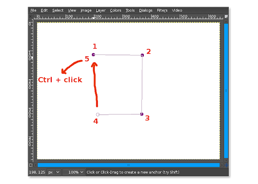 - Select the Paths Tool, create a square image by clicking 4 points (don't drag). To connect the last line, press Ctrl right at the first point. Tata in such a way that it is trapezoidal.