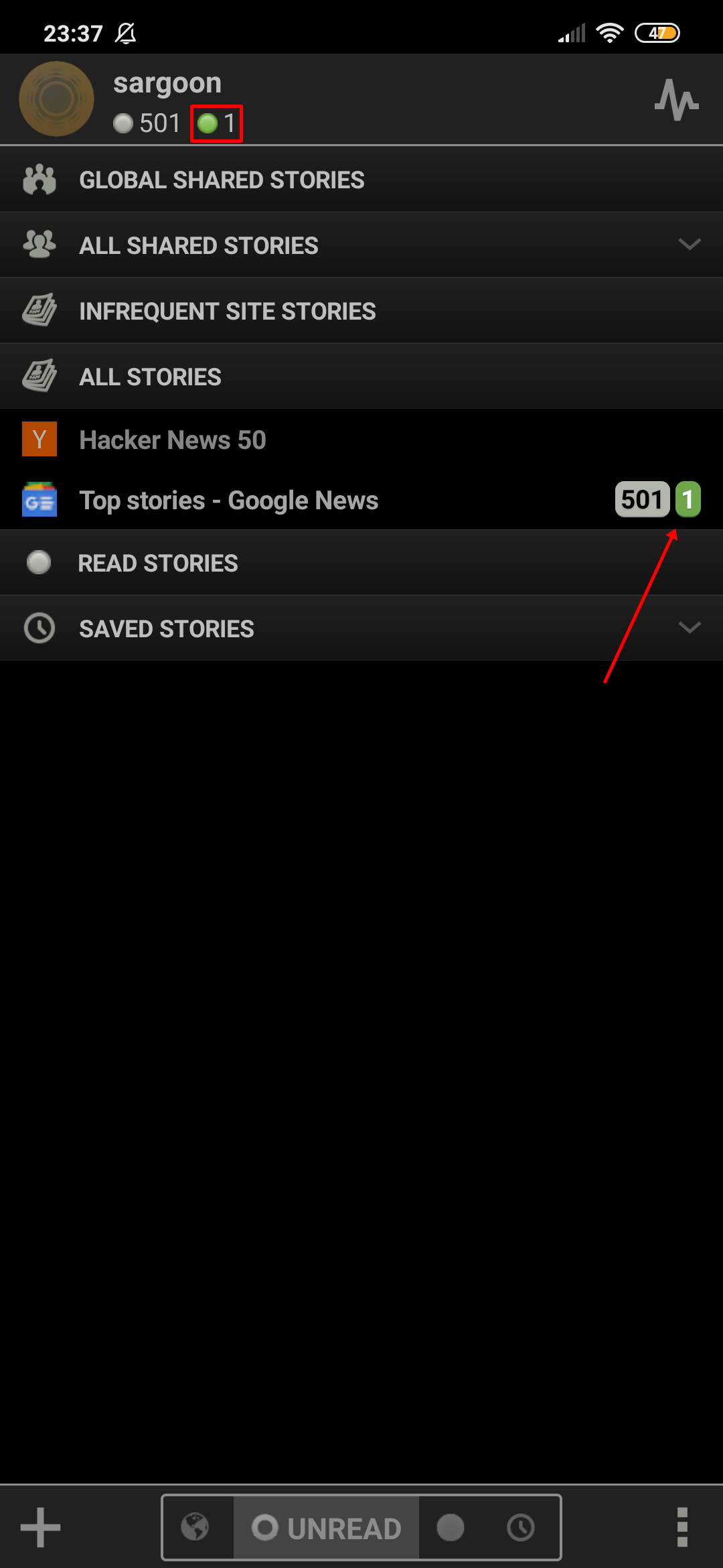 UNREAD: It allows you to see stories that you have not read yet. (stories that are evaluated positively or negatively can also appear here.)