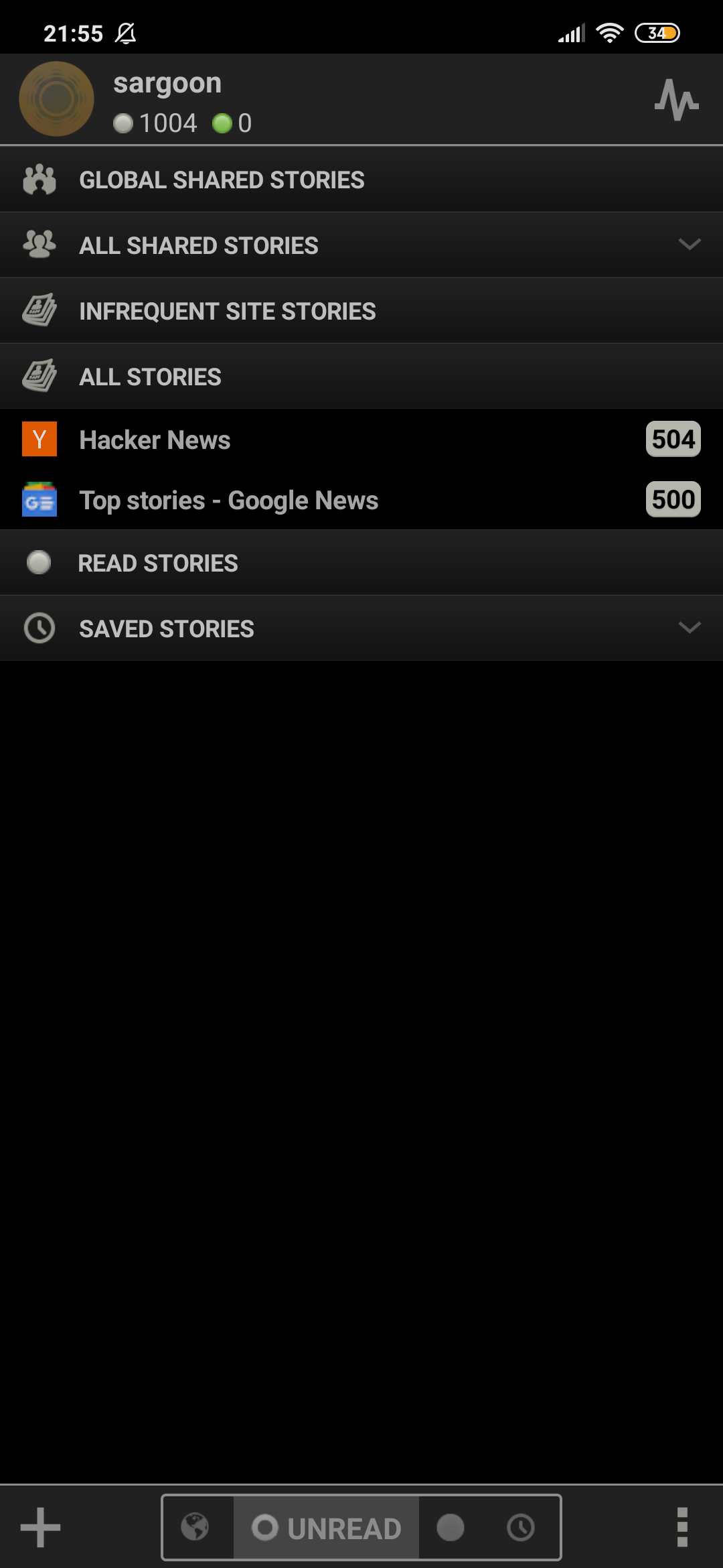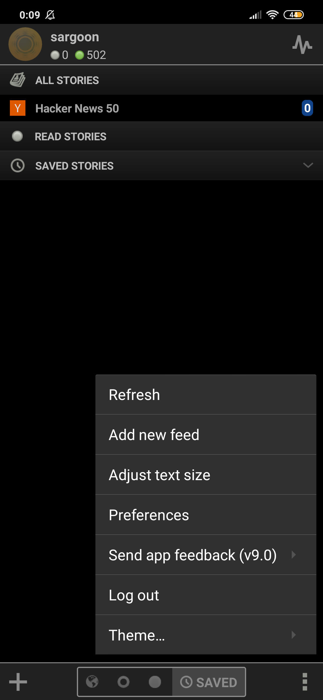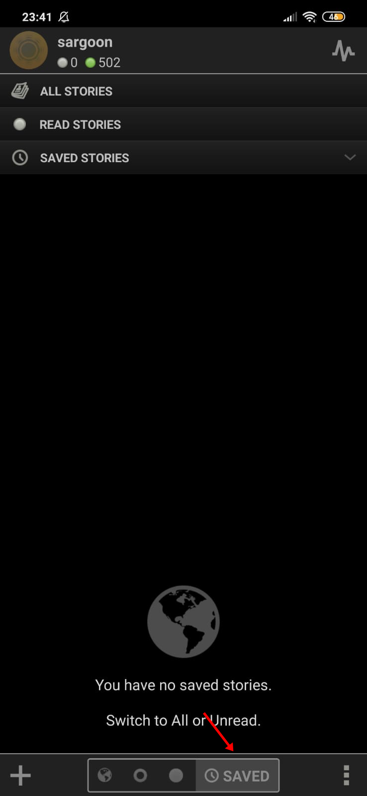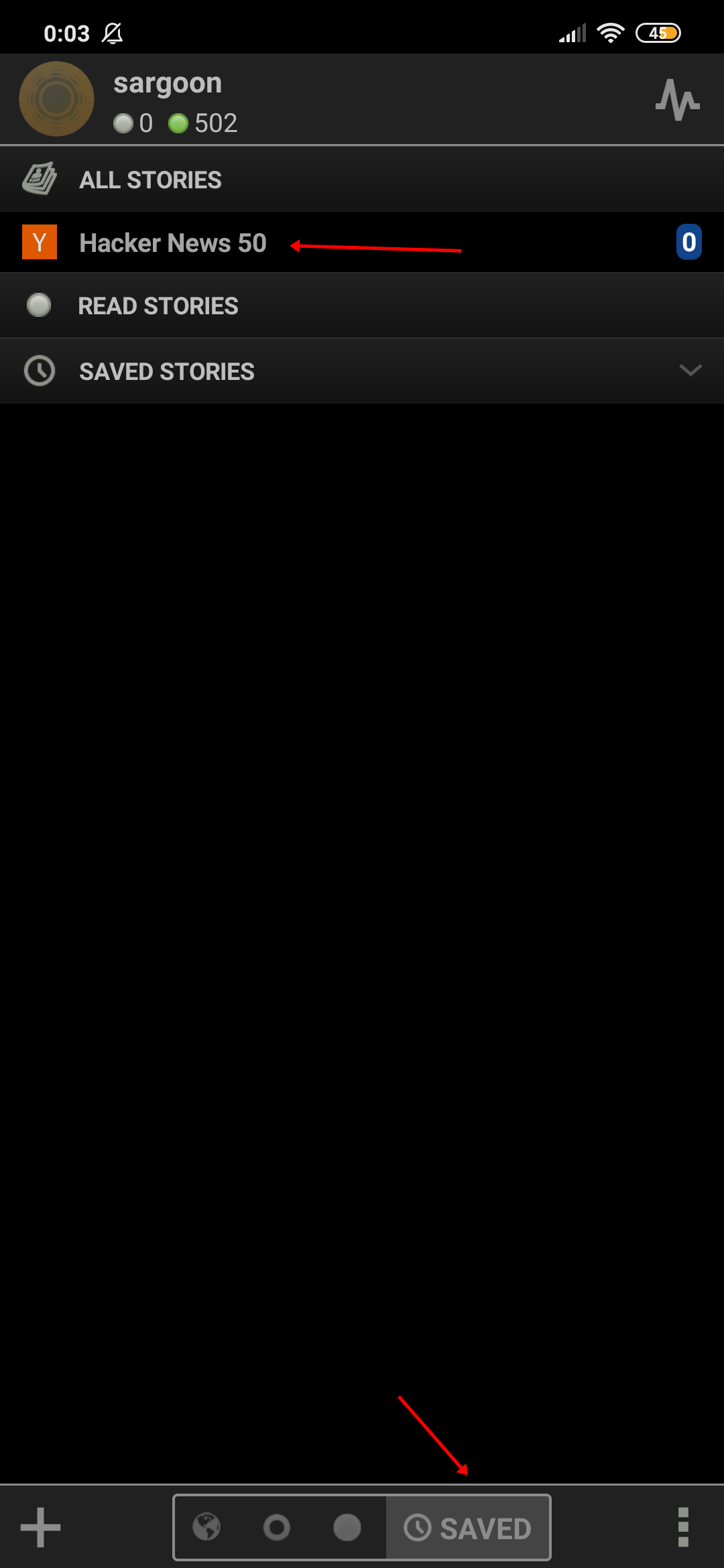 As you can see, thanks to the insta-fetch feature, I can easily access the feeds I saved with the Saved tab at the bottom of the homepage.