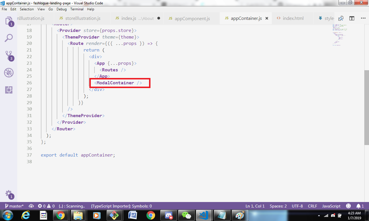 Lastly, a modalContainer should be added to the appContainer to render the modal.