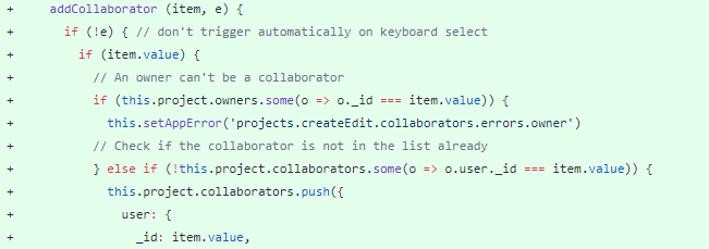 The aim is to add collaborators to a project with a roles array. This will apparently allow the owners to delegate some power to users without having them linked to the github repository.How did you implement it?