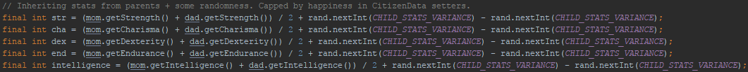 • Mom / dad entities are required and chosen randomly in a citizen hut.