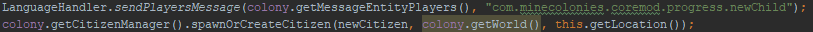 After creating the necessary data for our new child citizen we can spawn it and notify the players in the colony about it.