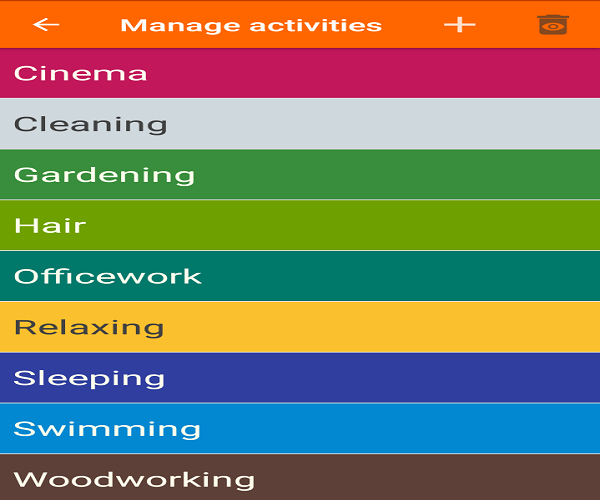However, the preset activities are only few in numbers and do not include all day to day activities we do every day. With the “Add activities” button, you can add new activities to allow for easy choosing of these activities from the Home Tab.