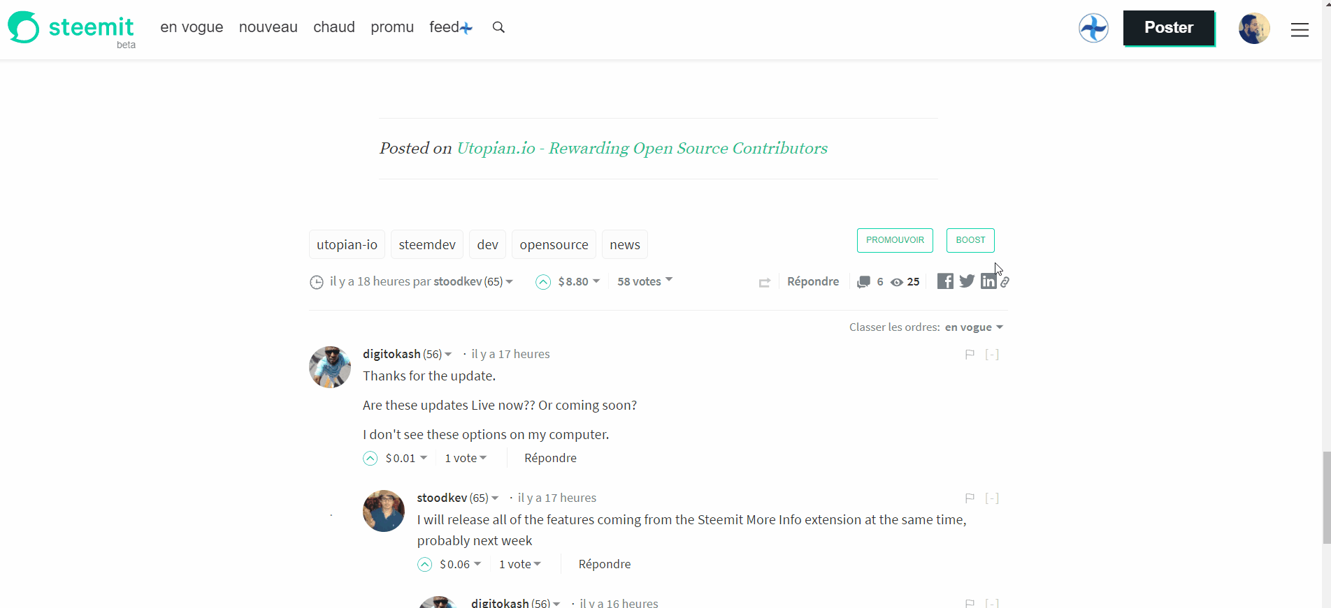 I encourage all of you to participate to the development of SteemPlus, either by your ideas or your technical help, depending on your background. For this, you can use the awesome Utopian.io platform, that rewards contribution to opensource projects.