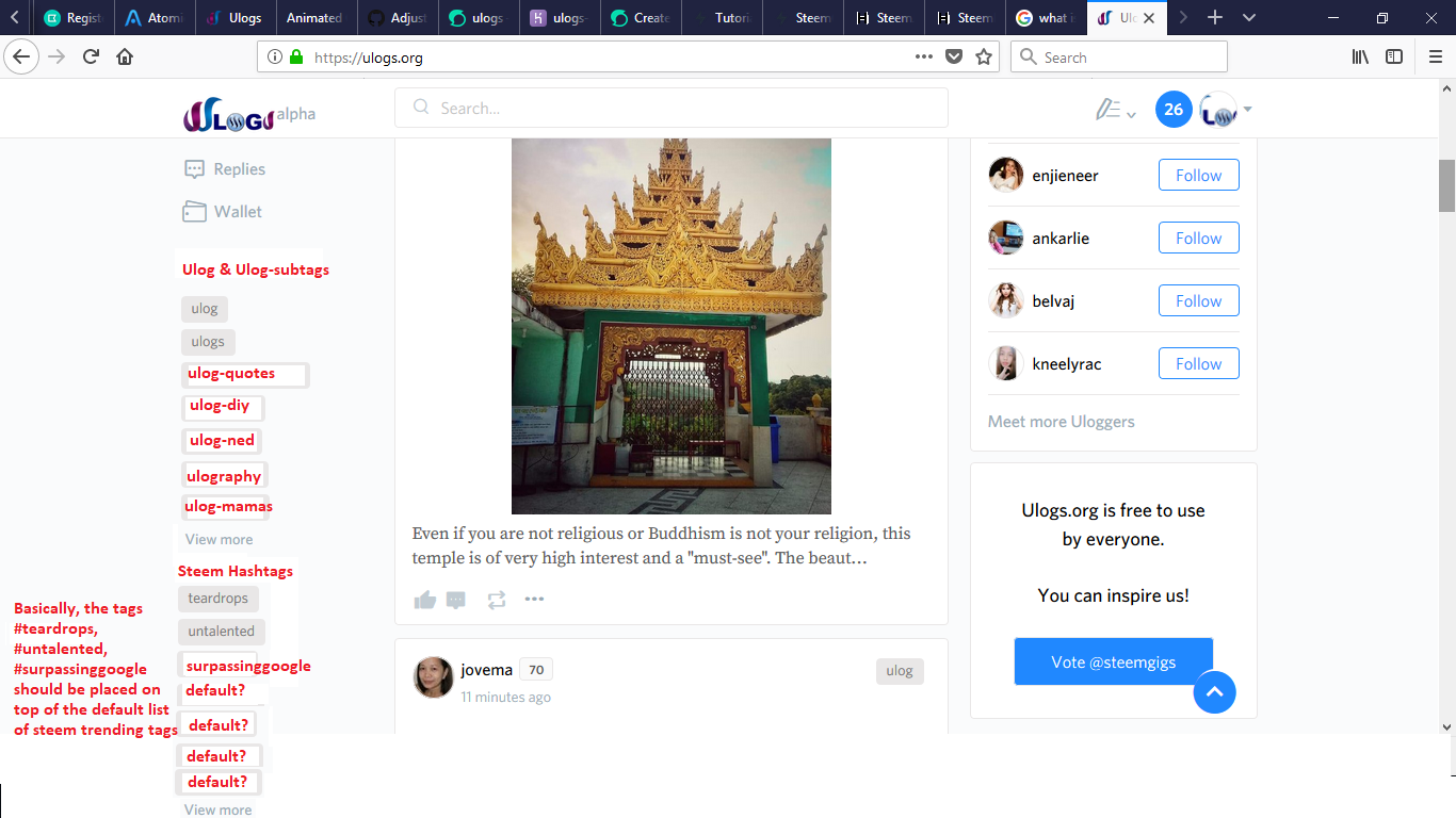 Gracias @surpassinggoogle por ayudarnos y proporcionarnos nuevas etiqueras para encontrar con mayor facilidad las diferentes categorias de los Ulogs de los cuales disponemos en Steemit. Saludos