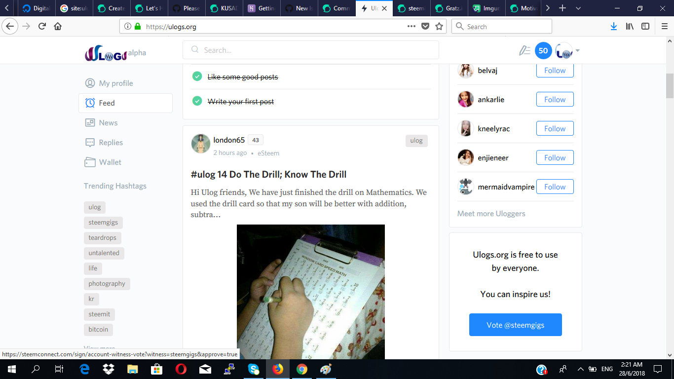 - https://busy.org/@ulogs/new-to-ulogs-or-welcoming-new-celebrities-june-25-2018