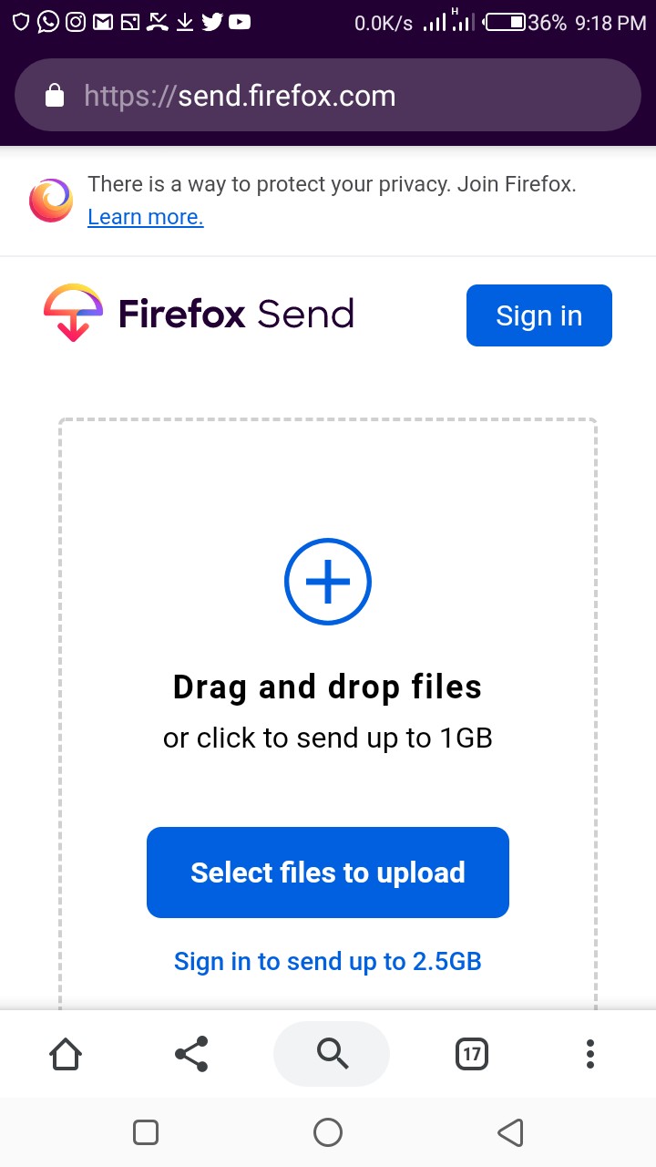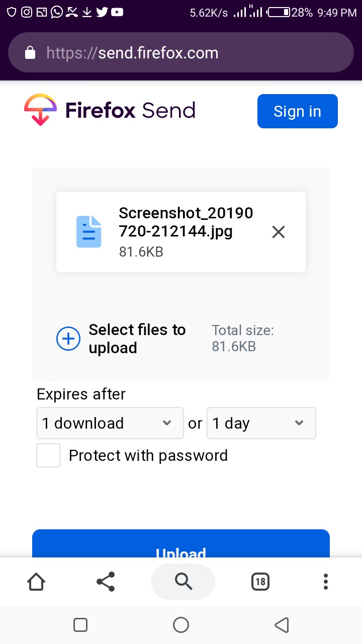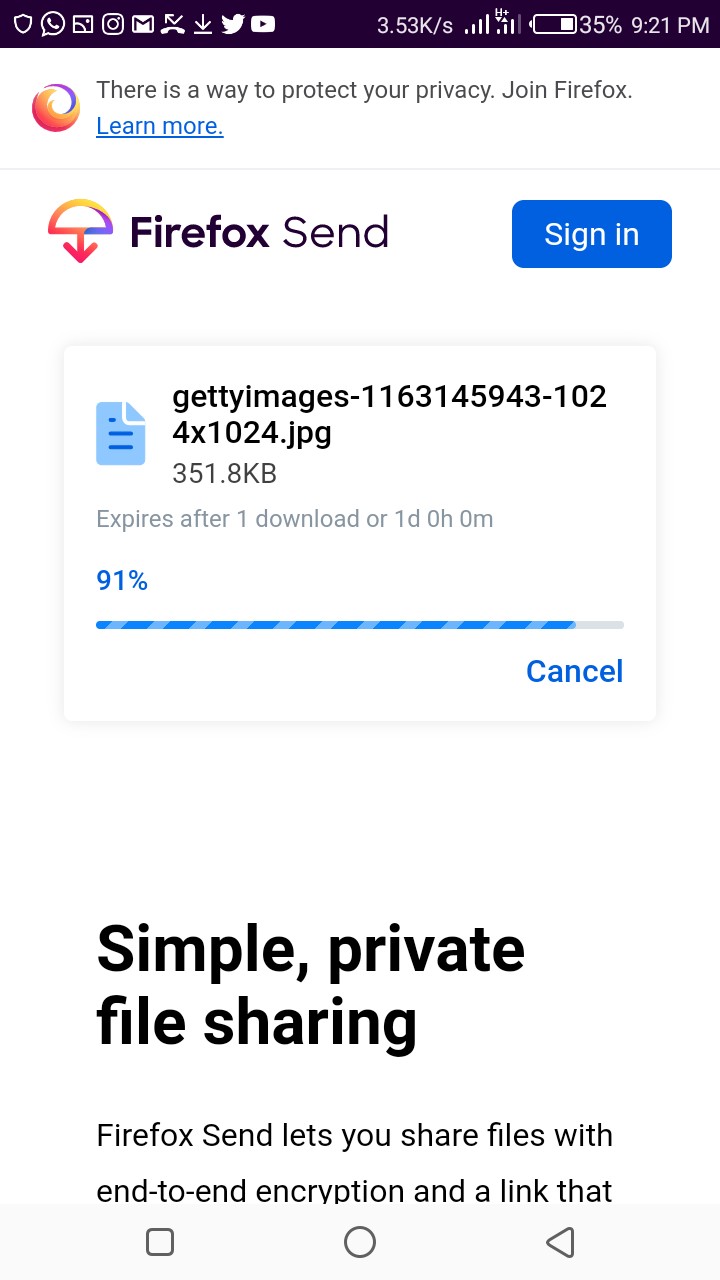 Firefox send - A web sharing tool that provides a service to keep your file save.