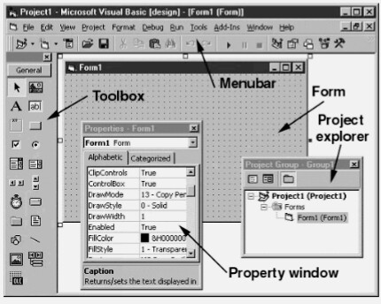 Form or Form window: it display all the informaton in program with control that have been placed in forms