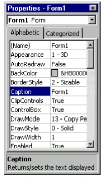 - Activate the properties window and highlight the caption