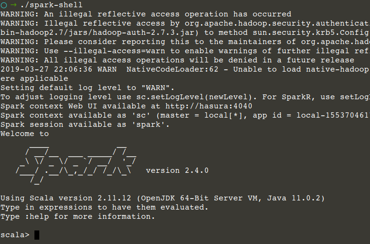 After you extract the spark-2.x.x-bin-hadoop2.7 folder,navigate to bin folder ,open terminal and type this following command ./spark-shell [enter]