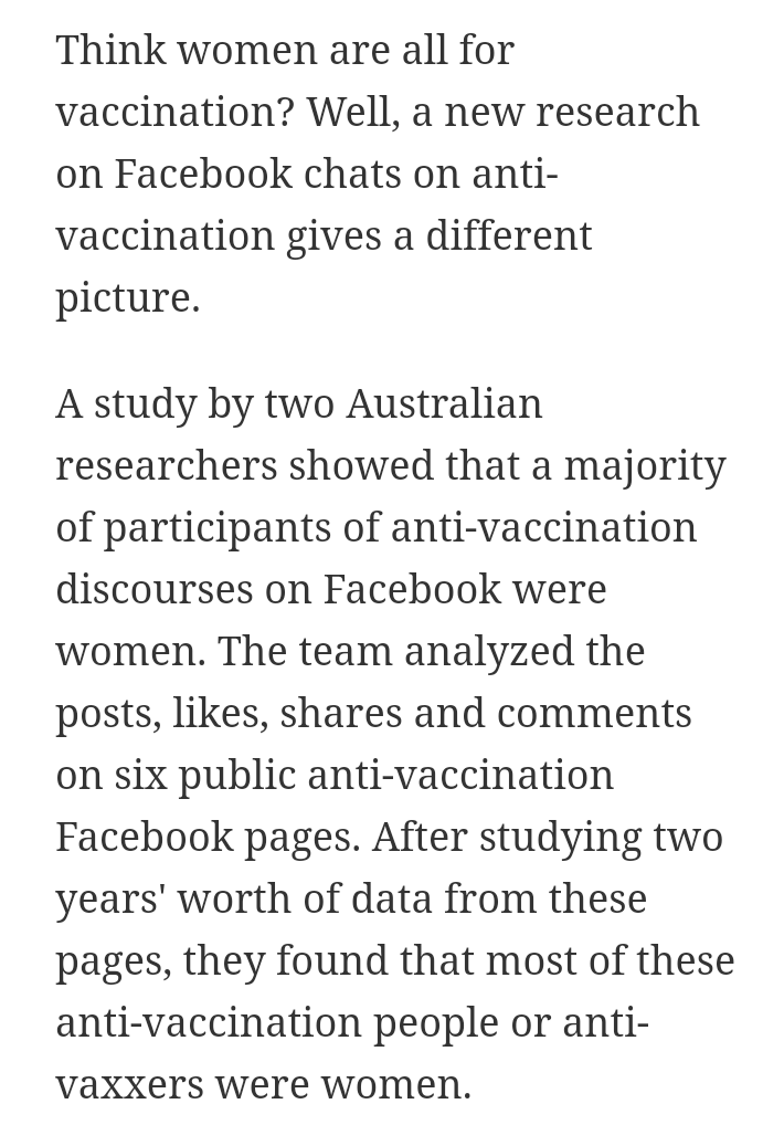 They made the groundbreaking conclusion that most "anti-vaxxers" are women. Shocking, right? I'm sure that study will open the doors to better and safer vaccines!