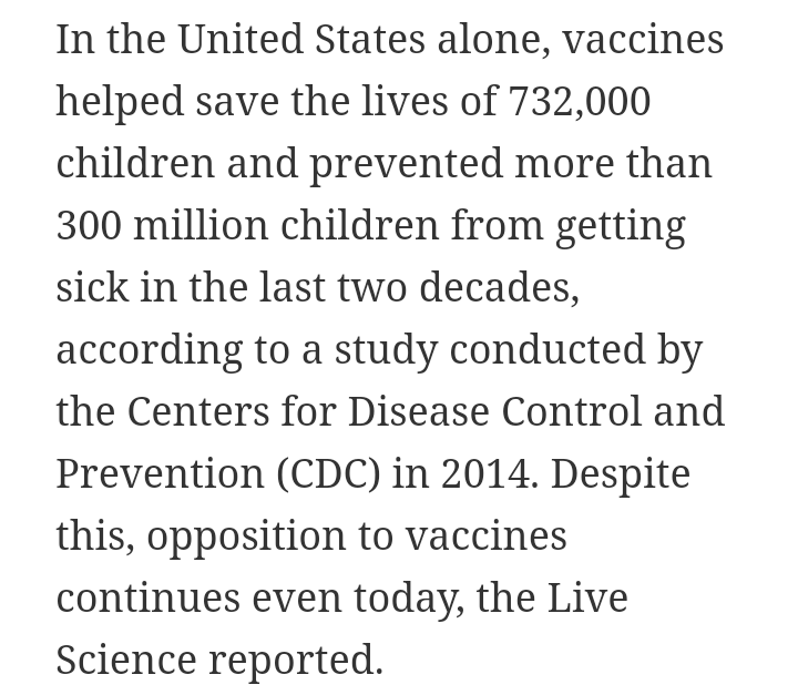 This writer, however, told all their readers that a study proves that vaccines have saved so many lives...