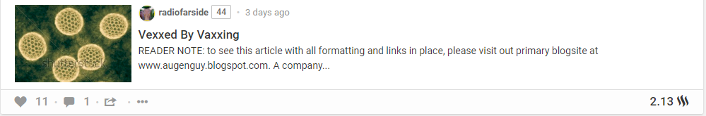 Line up. Come one, Come all! It's time for your weekly inoculation from Innocuous Libre. He scours Steem for the most ridiculous vaccine opponents and lays them out for all to see. Feel free to join his wrestling ring and fight the nonsense.