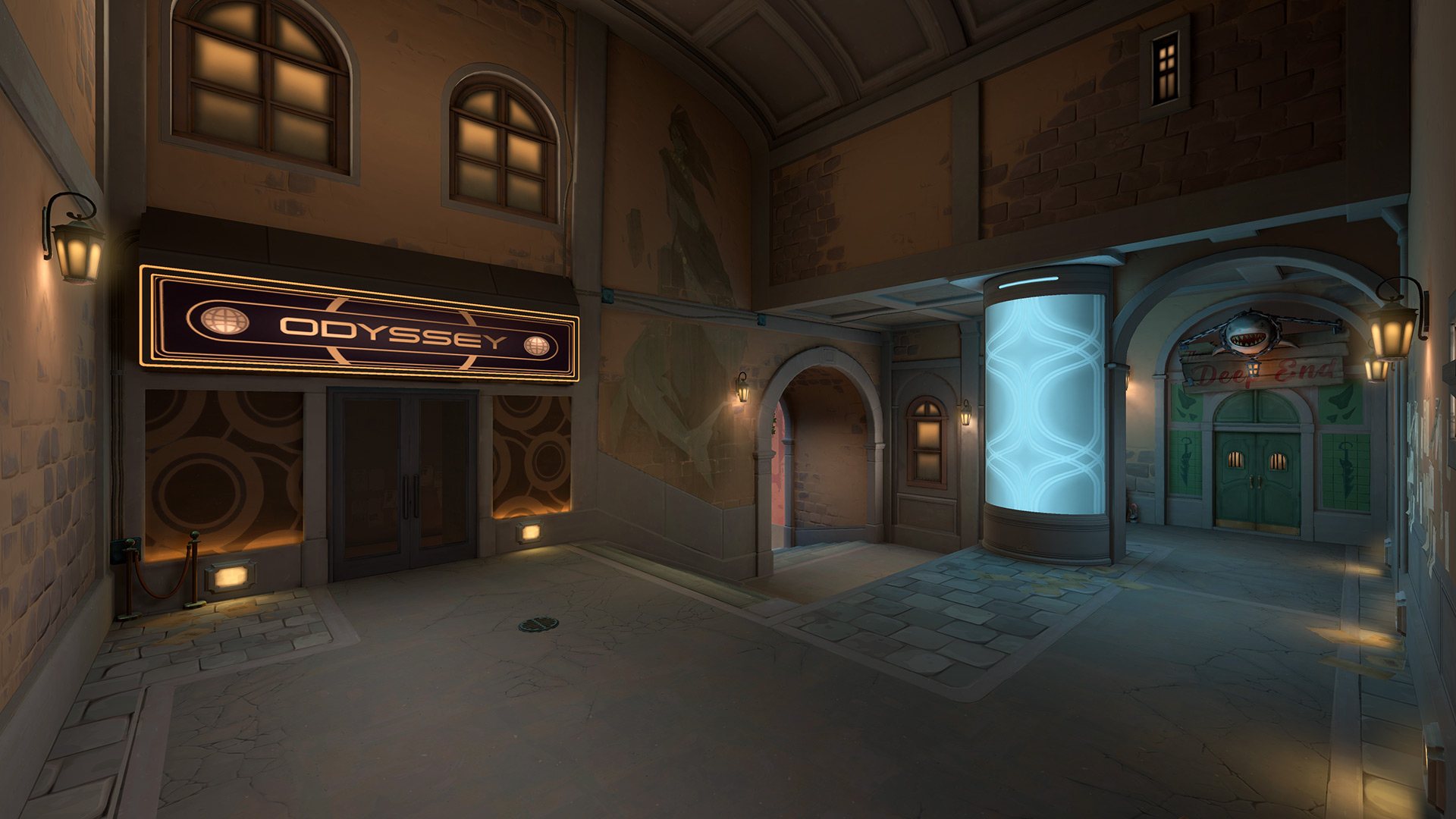 On Omega Earth, a pearl is set beneath the Portuguese seas. There are no unusual mechanics, such as doors or teleporters, according to Riot, and only three standard lanes – one small-mid lane and two long-range lanes on the sides. On this two-site map, however, there is a vertical element, as Attackers must drop into Defender territory.
