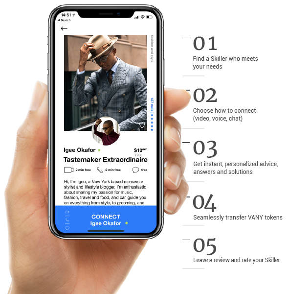 Vanywhere is already building a diverse community of people and skills. From chefs to stylists, and programmers to designers, the skills included represent the richness and diversity of the world. Whether connecting live with a celebrity chef while cooking dinner, talking with a crypto expert about the latest ICOs or getting live fashion advice from a social media fashion influencer, Vanywhere gives people access to personalized experiences they never had before. And it gives the people with those skills a new way to market themselves and generate income.