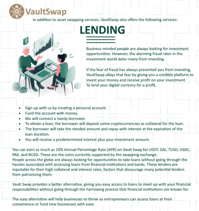 To get more information about Lending you can follow the picture below or visit the website. https://vaultswap.io