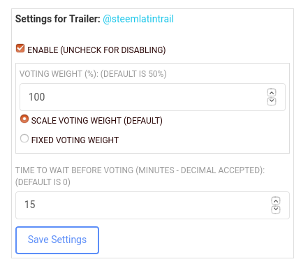 Configurar el Trail al 100% y ganar el fanbase y el voto por parte de @steemlatintrail