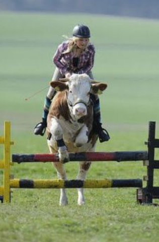 There are people all around the world, teaching cows and steers to be ridden. They can trail ride, jump and even manage Dressage like any horse.