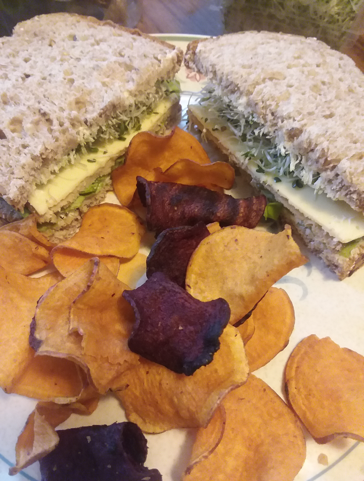 On the side we did chips, these are called Terra and they're made from sweet potatoes and beets. My kids love them, though they have a firm dislike for either of those veggies in other forms, lol!