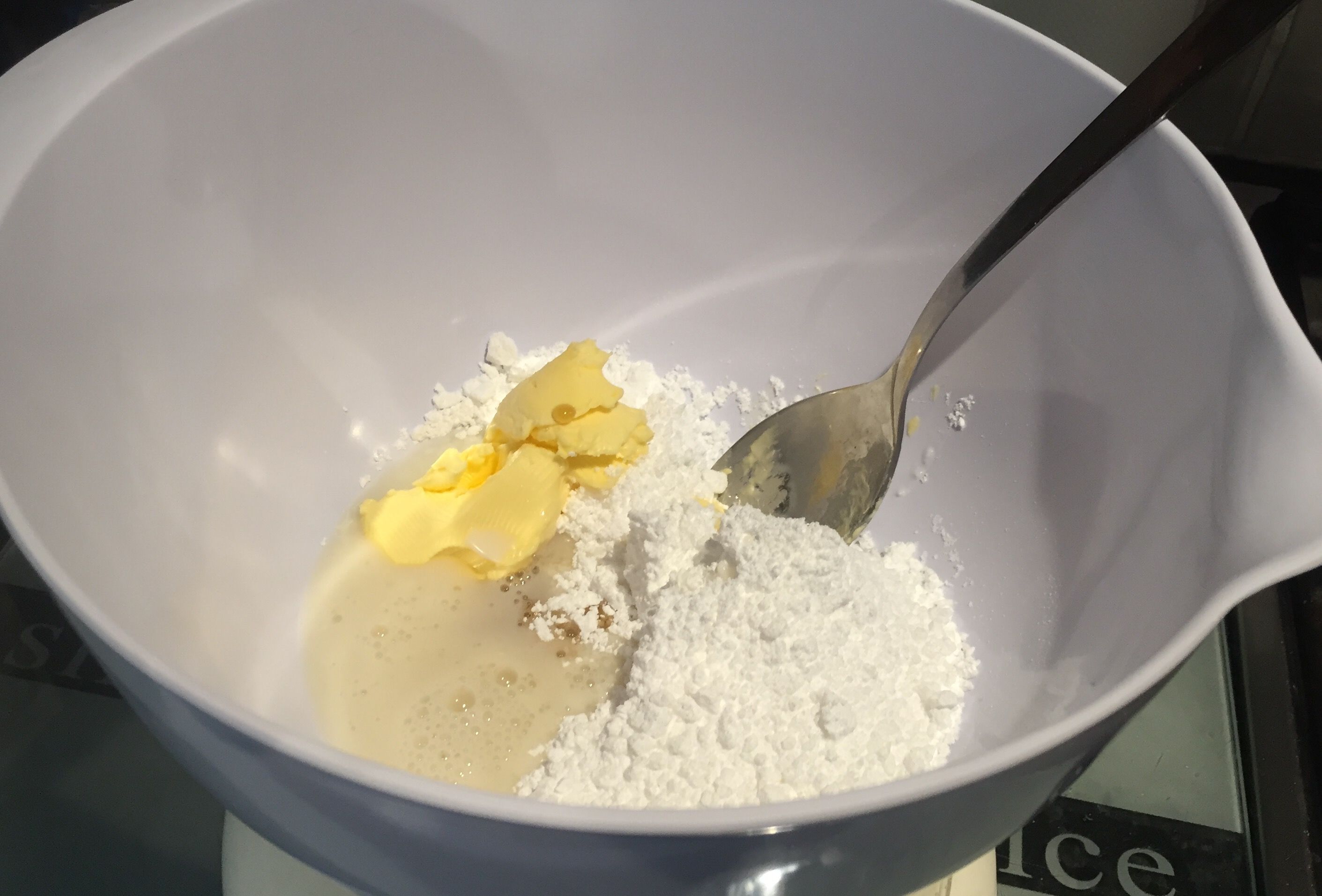 - Add the icing sugar, vegan butter, milk and vanilla essence to a mixing bowl.
