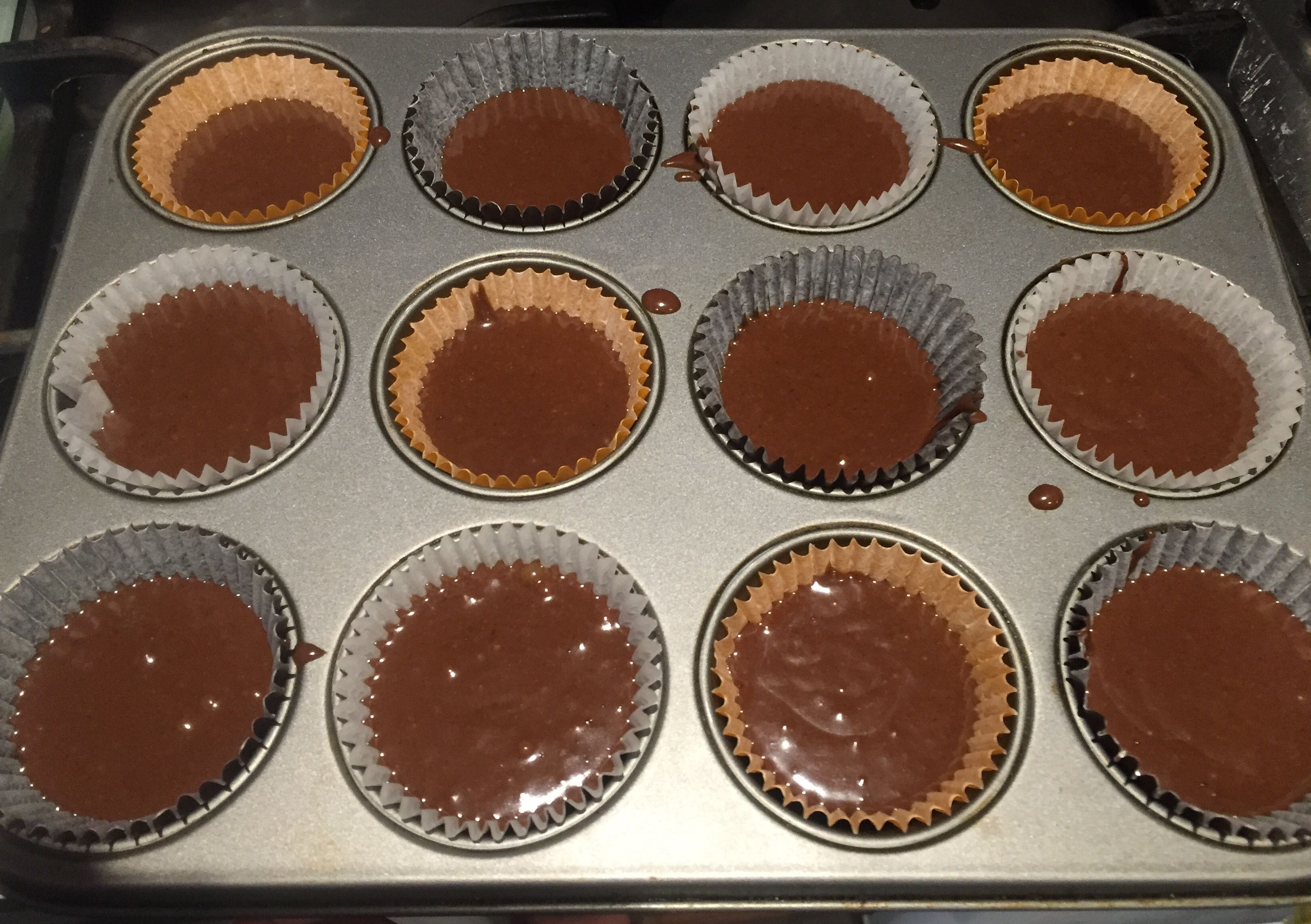 - Pour the batter into the muffin cases, about 3/4 of the way full.