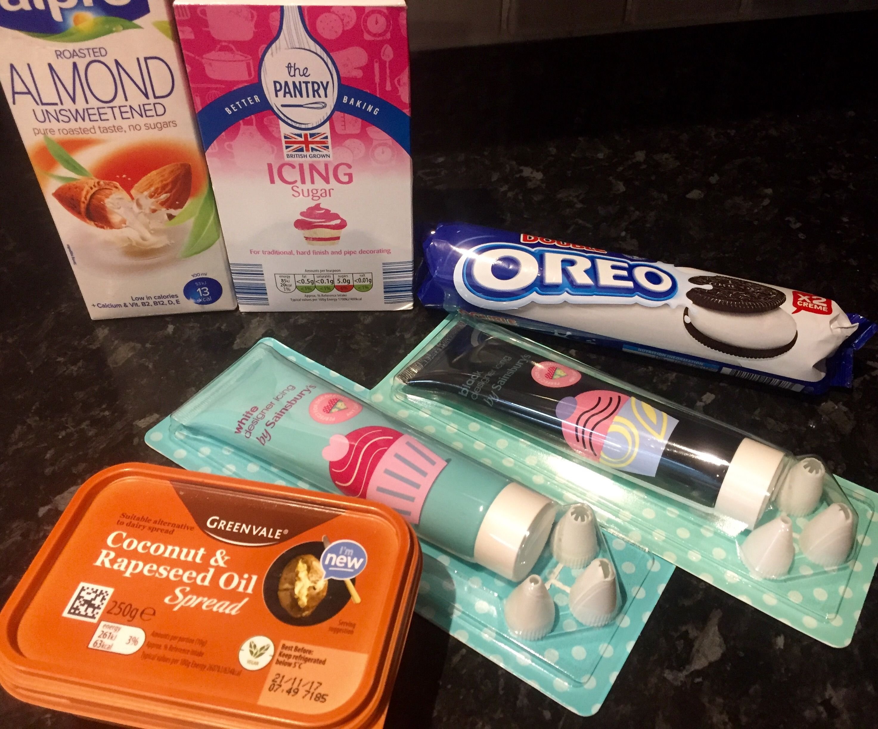 The more experienced baker will no doubt use a piping bag and colour their own home made icing to decorate their cakes but being the novice that I am I opted for some awesome (and vegan!) icing tubes I found in the supermarket.